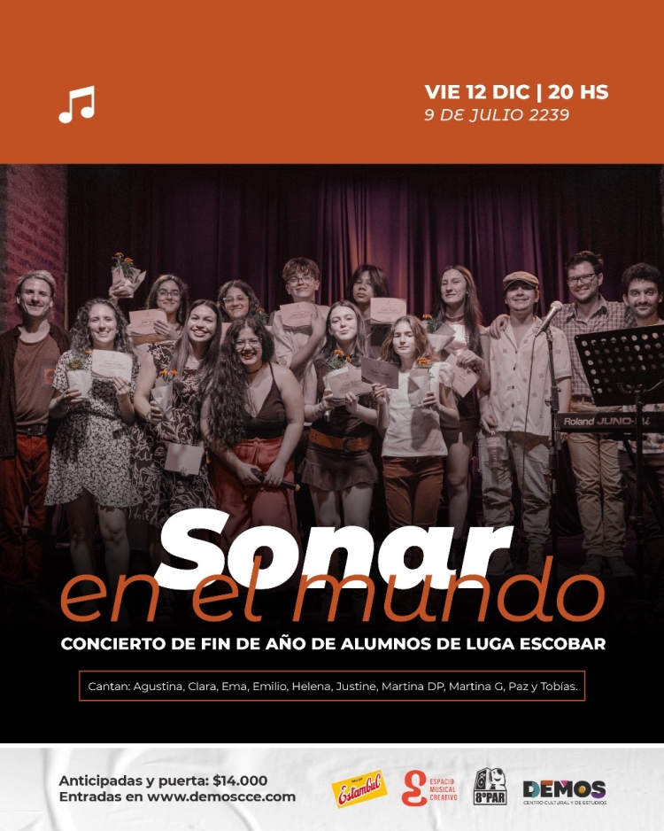 Te invitamos a vivir un concierto donde el verdadero protagonista es el proceso. Llega "Sonar en el mundo", el cierre de año de los alumnos de Luga Escobar: Espacio Musical Creativo.